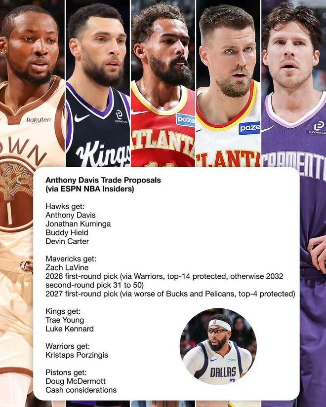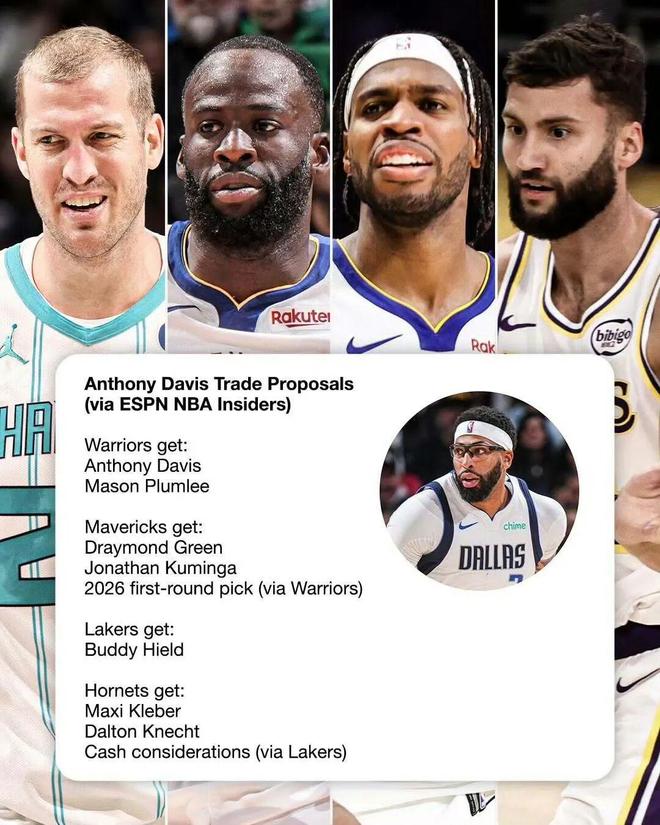 在Shams報道了相關交易流言后,ESPN模擬了五個關于濃眉的交易方案,每一筆看完都讓人忍不住想說一句:啊?